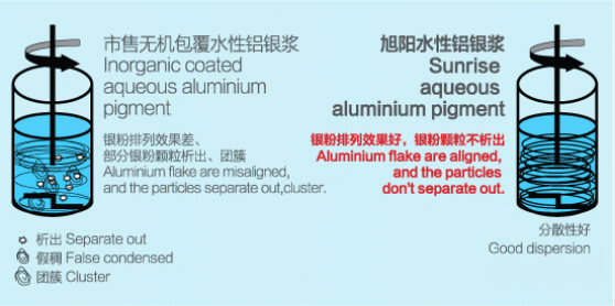 表面經(jīng)過(guò)聚合物薄包處理,與水性樹脂體系有良好的相容性,具有優(yōu)異的金屬感。